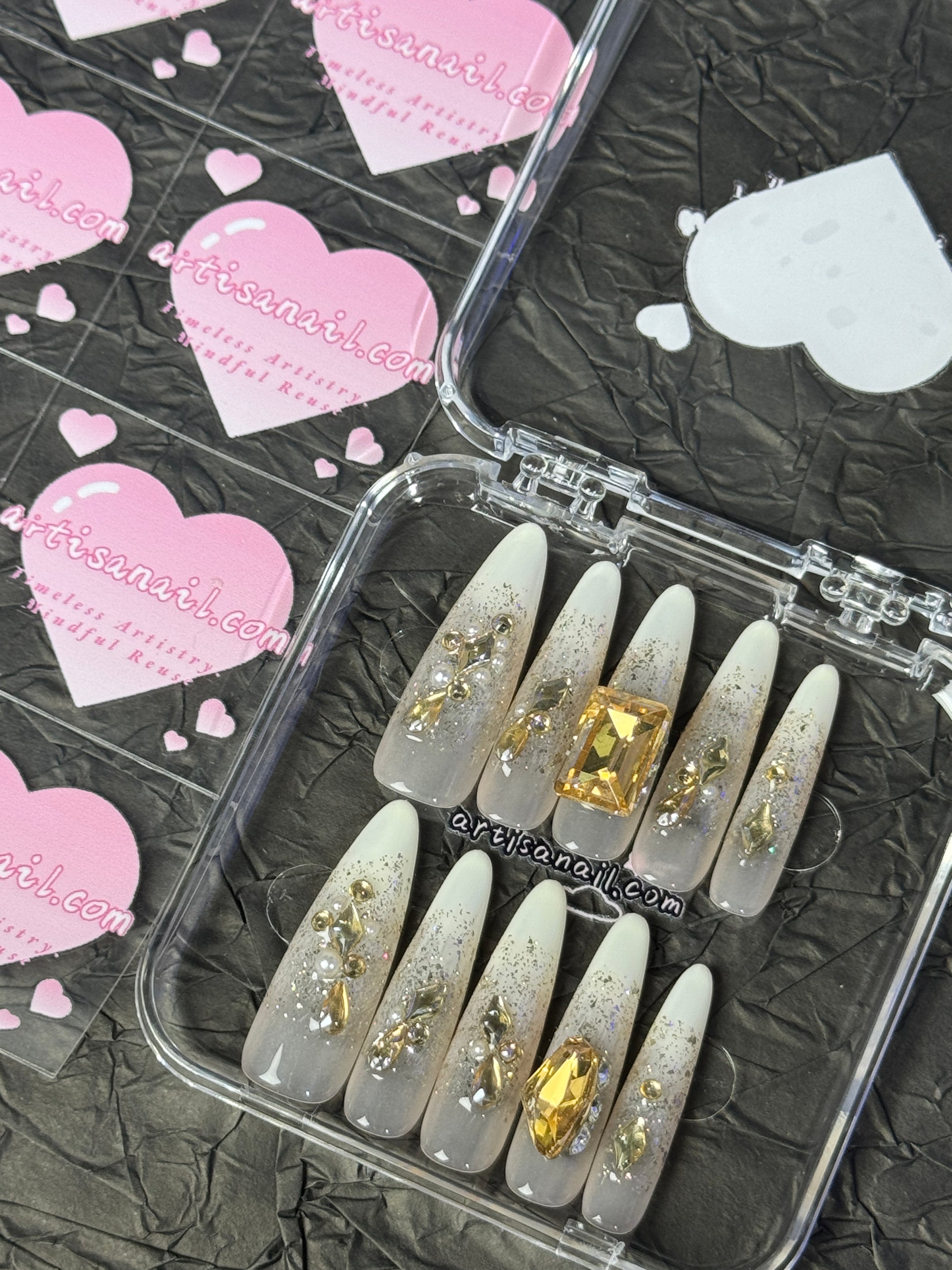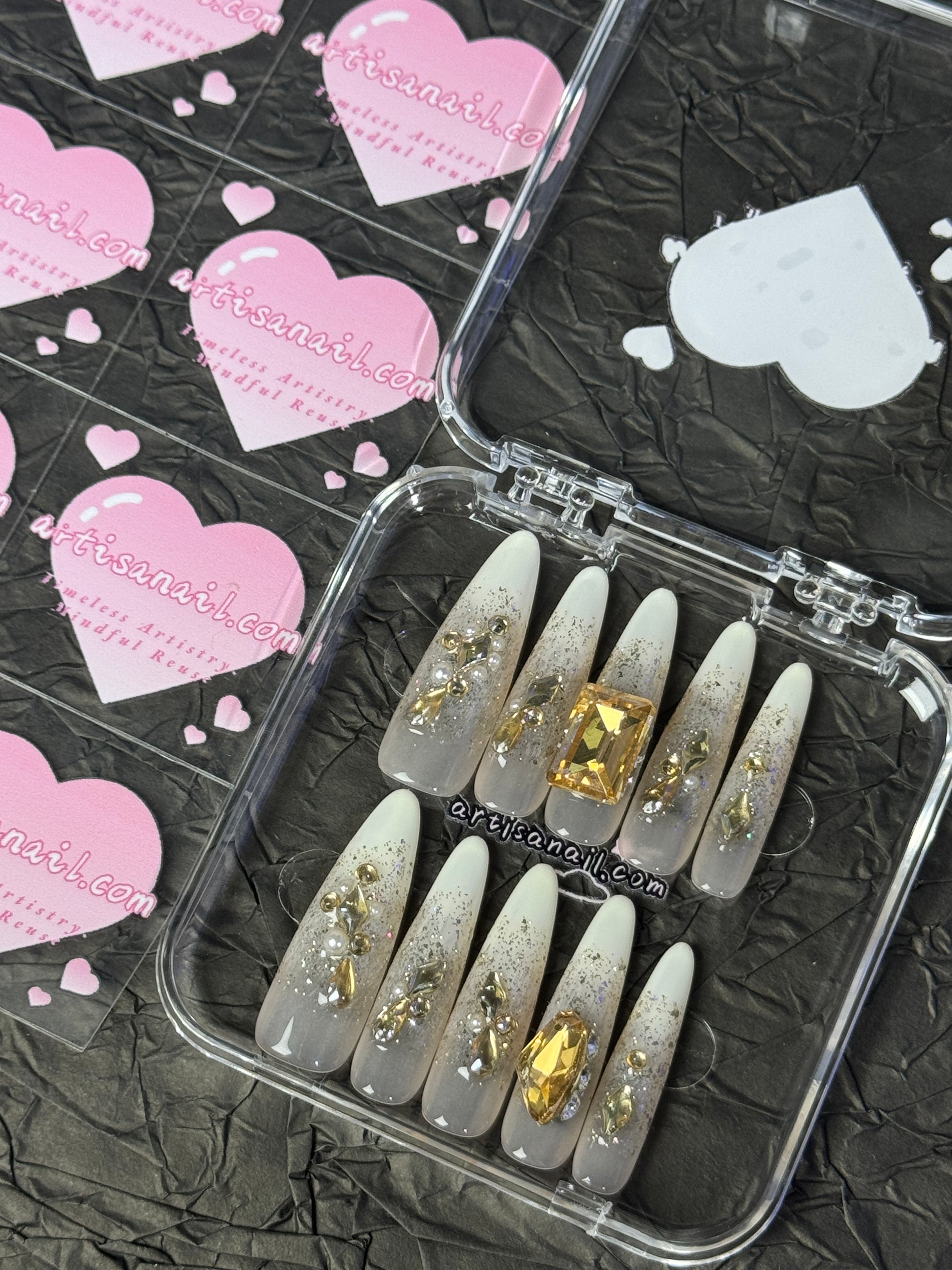 Our handmade press-on nails are designed to be reusable with proper care. After wearing them, you can remove them by soaking them in warm water until the glue on the back becomes soft enough to scrape off for the next application. As for gel tabs, they can be easily peeled off and are ready to be reused. With careful handling and storage, you can use your press-on nails multiple times and enjoy their beauty and convenience for an extended period.