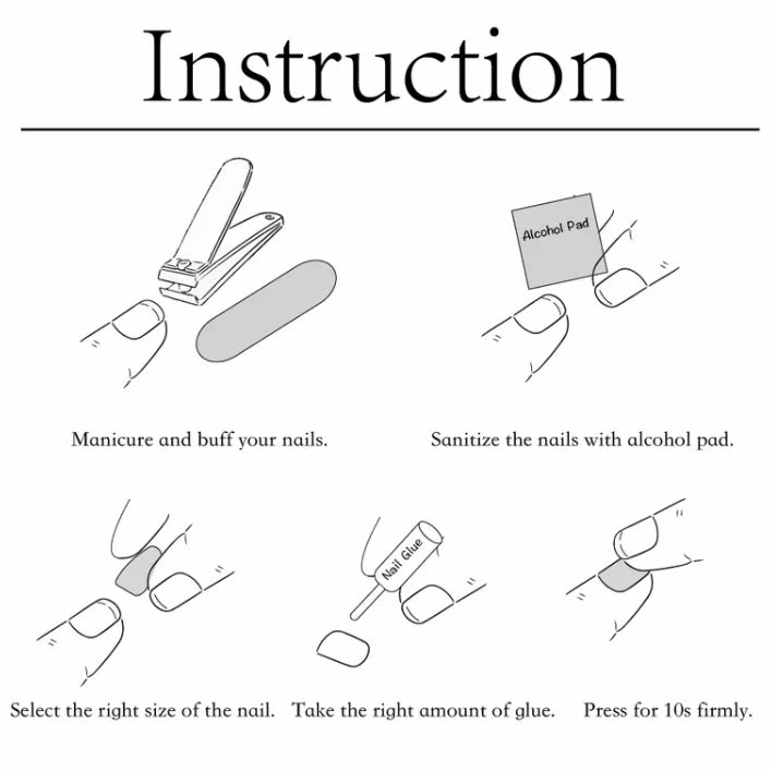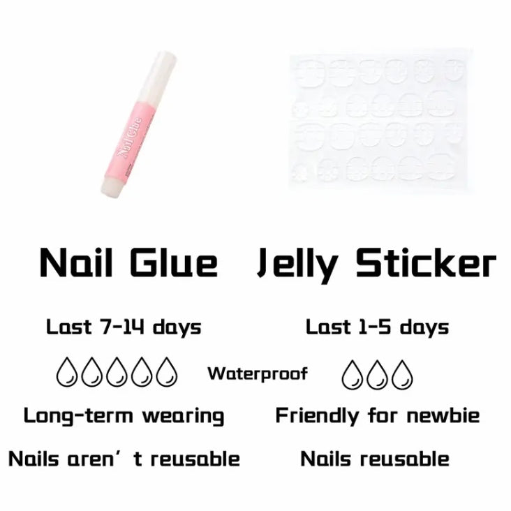 Our handmade press-on nails are designed to be reusable with proper care. After wearing them, you can remove them by soaking them in warm water until the glue on the back becomes soft enough to scrape off for the next application. As for gel tabs, they can be easily peeled off and are ready to be reused. With careful handling and storage, you can use your press-on nails multiple times and enjoy their beauty and convenience for an extended period.