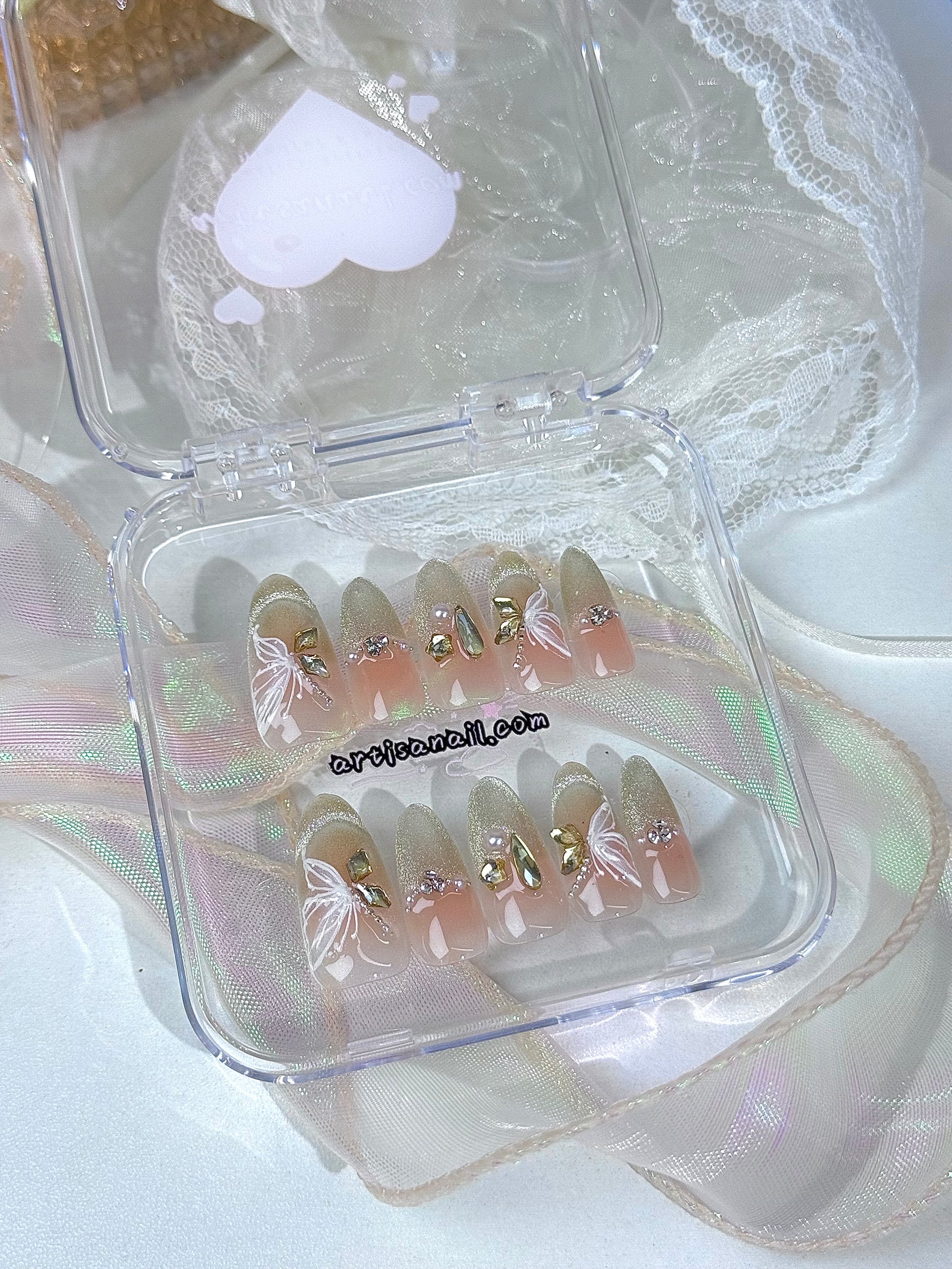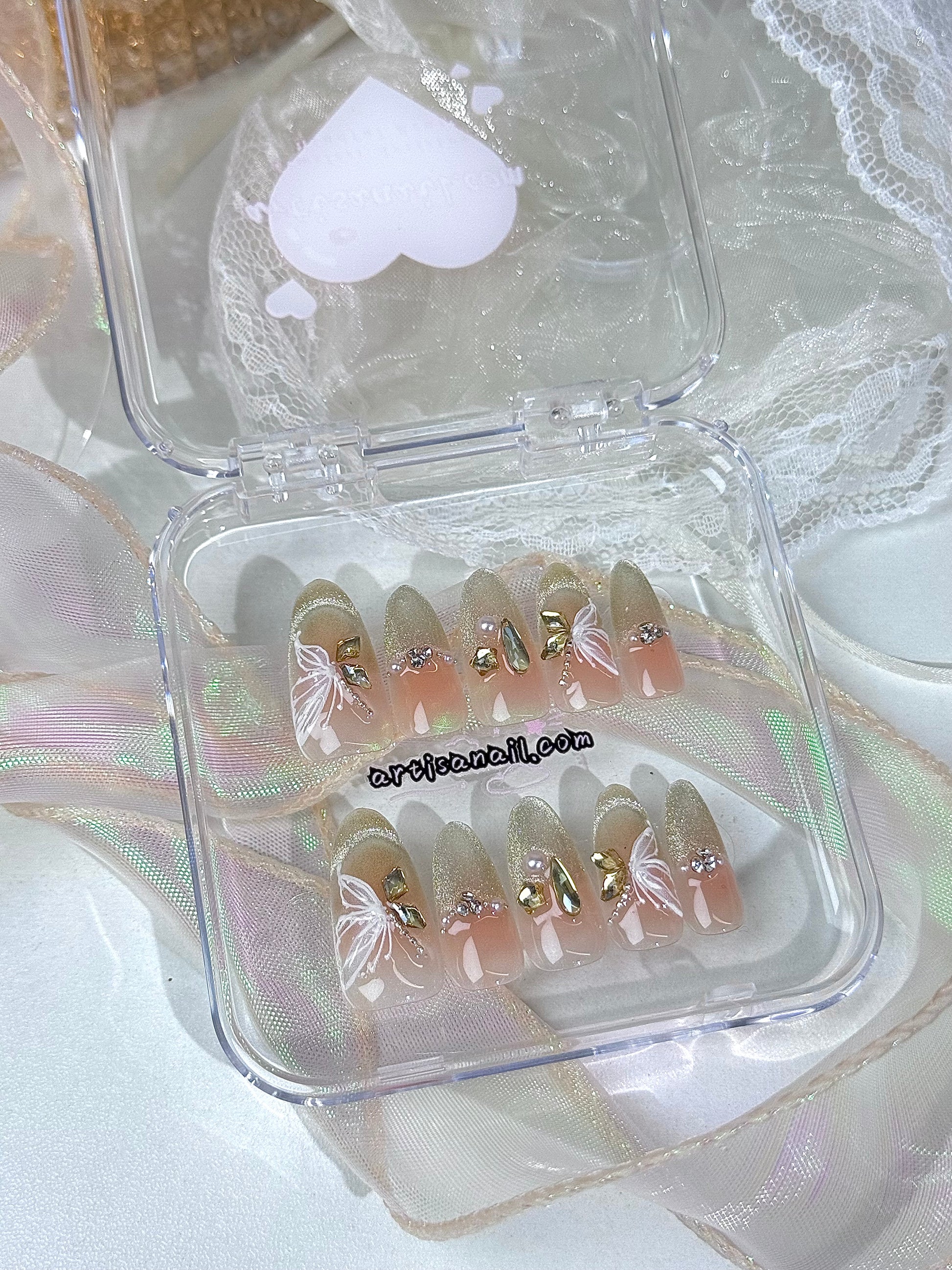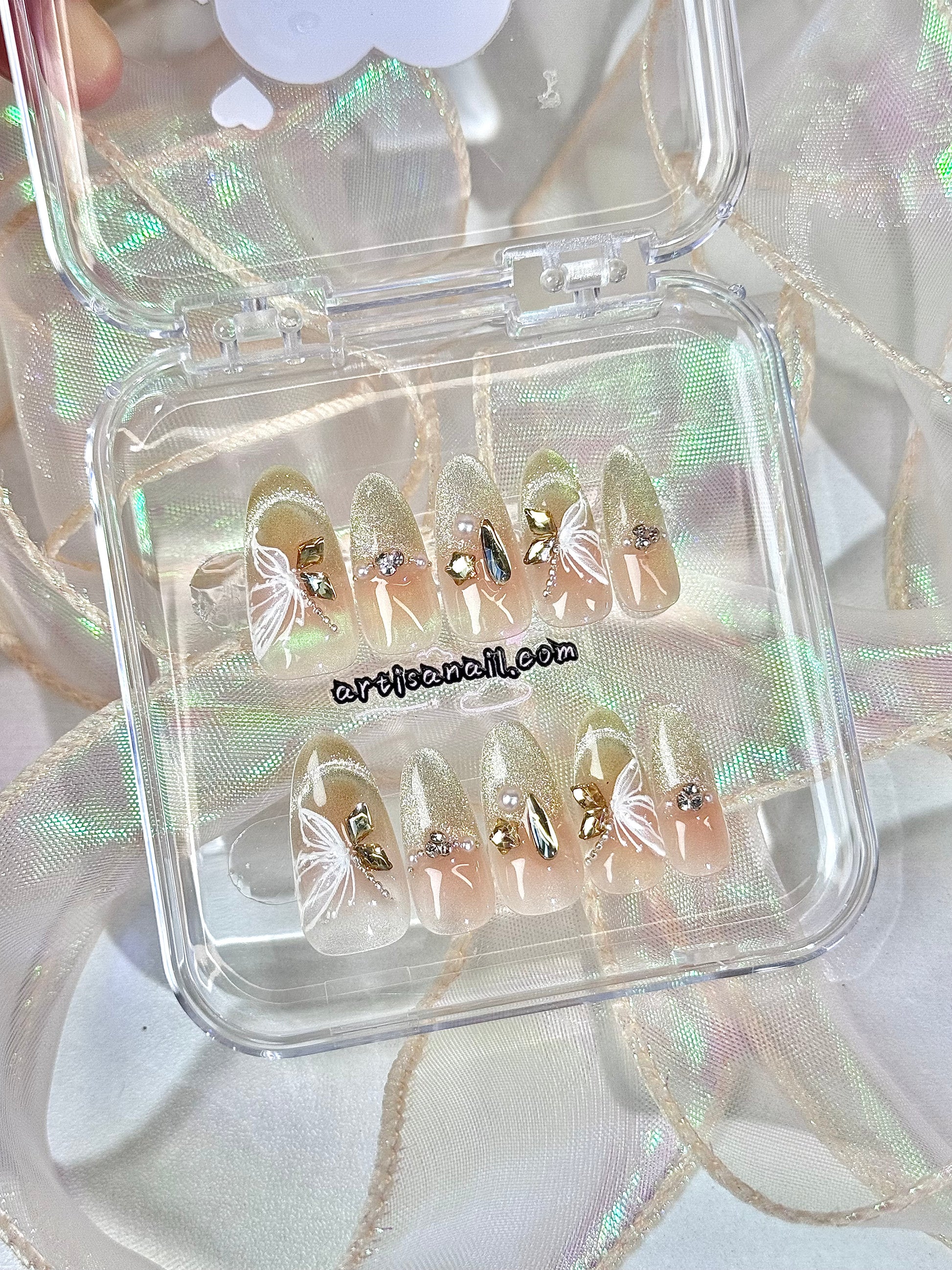 Our handmade press-on nails are designed to be reusable with proper care. After wearing them, you can remove them by soaking them in warm water until the glue on the back becomes soft enough to scrape off for the next application. As for gel tabs, they can be easily peeled off and are ready to be reused. With careful handling and storage, you can use your press-on nails multiple times and enjoy their beauty and convenience for an extended period.