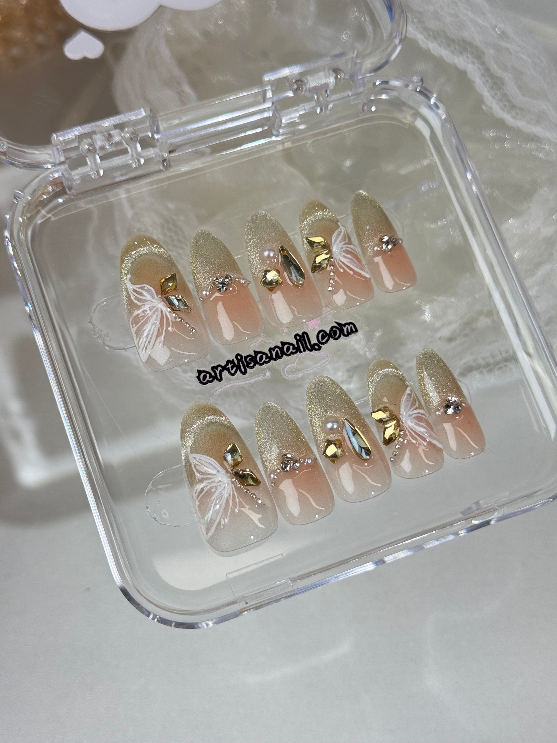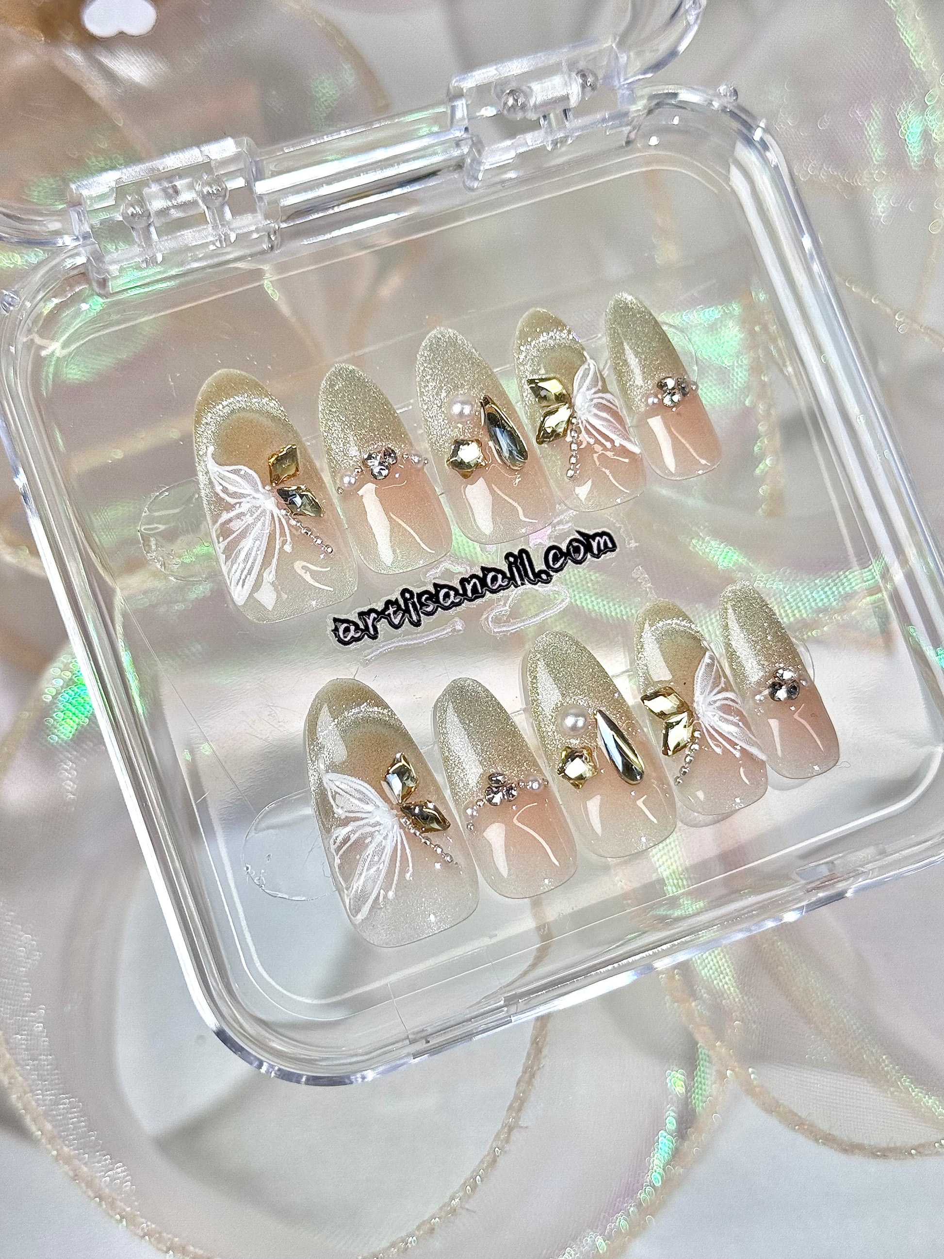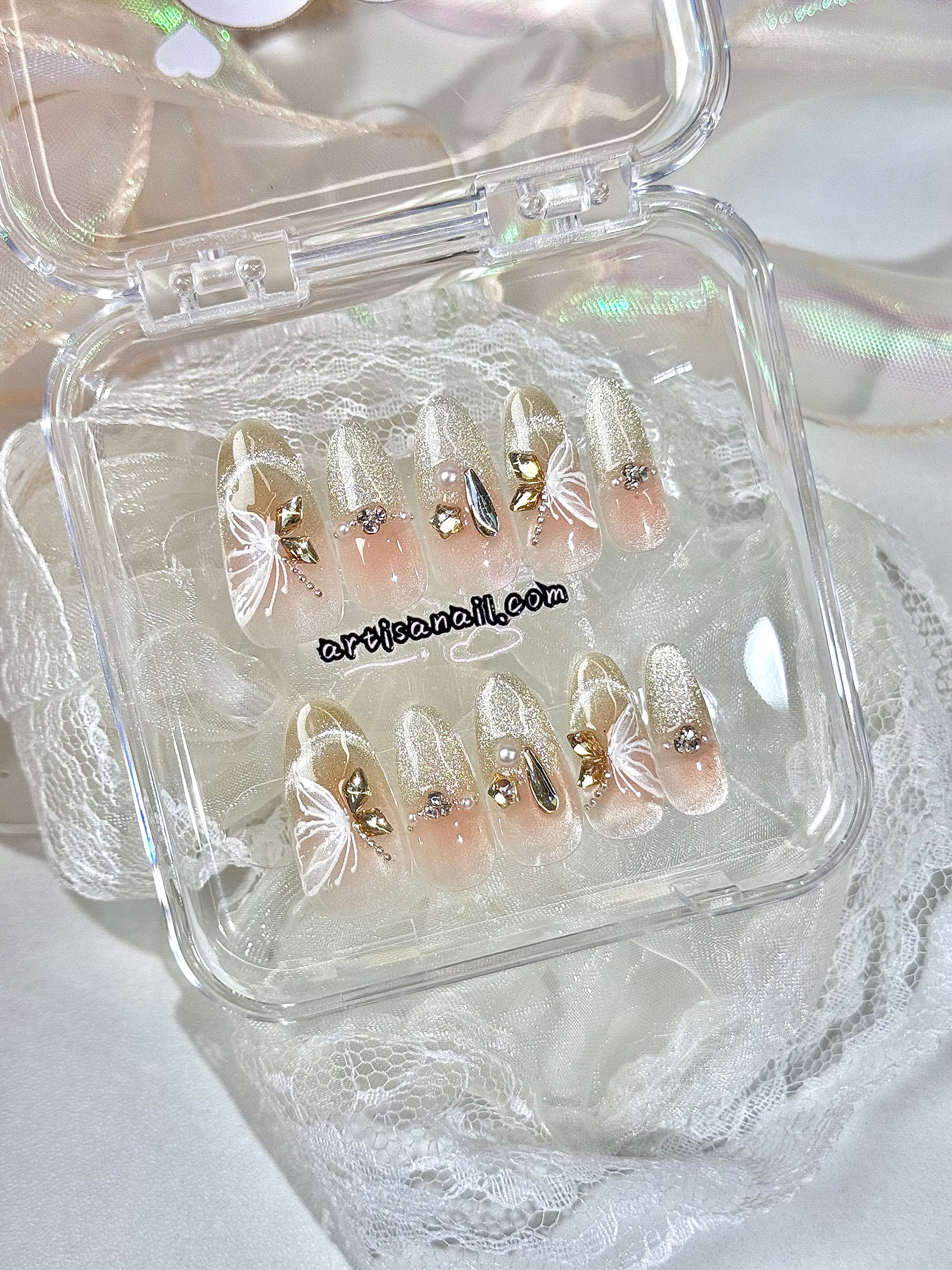 Our handmade press-on nails are designed to be reusable with proper care. After wearing them, you can remove them by soaking them in warm water until the glue on the back becomes soft enough to scrape off for the next application. As for gel tabs, they can be easily peeled off and are ready to be reused. With careful handling and storage, you can use your press-on nails multiple times and enjoy their beauty and convenience for an extended period.