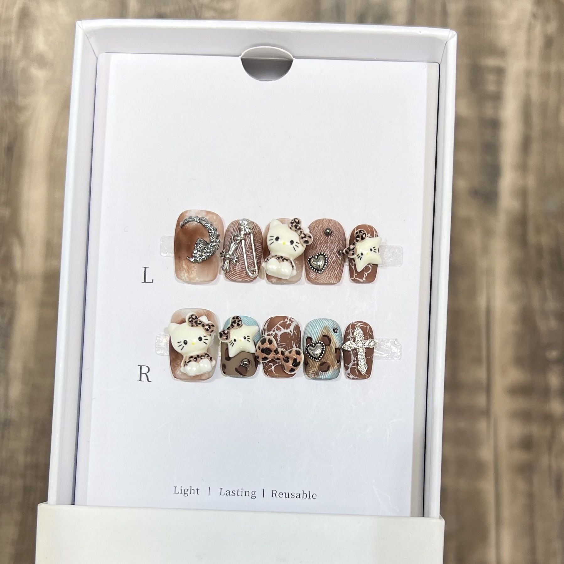 Our handmade press-on nails are designed to be reusable with proper care. After wearing them, you can remove them by soaking them in warm water until the glue on the back becomes soft enough to scrape off for the next application. As for gel tabs, they can be easily peeled off and are ready to be reused. With careful handling and storage, you can use your press-on nails multiple times and enjoy their beauty and convenience for an extended period.