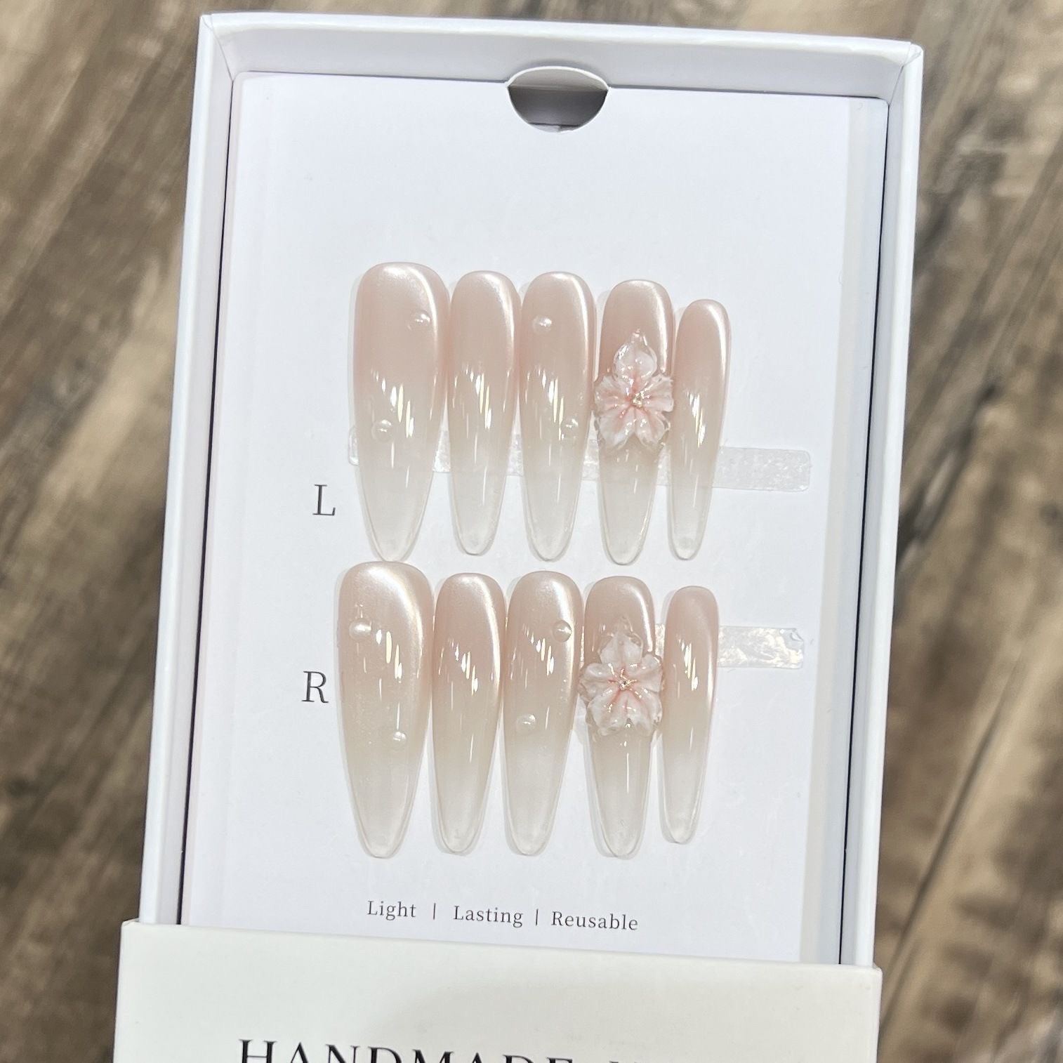 Our handmade press-on nails are designed to be reusable with proper care. After wearing them, you can remove them by soaking them in warm water until the glue on the back becomes soft enough to scrape off for the next application. As for gel tabs, they can be easily peeled off and are ready to be reused. With careful handling and storage, you can use your press-on nails multiple times and enjoy their beauty and convenience for an extended period.