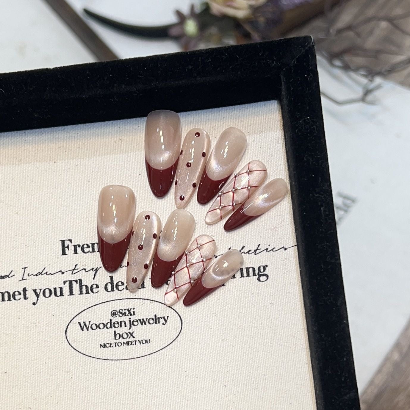 Our handmade press-on nails are designed to be reusable with proper care. After wearing them, you can remove them by soaking them in warm water until the glue on the back becomes soft enough to scrape off for the next application. As for gel tabs, they can be easily peeled off and are ready to be reused. With careful handling and storage, you can use your press-on nails multiple times and enjoy their beauty and convenience for an extended period.